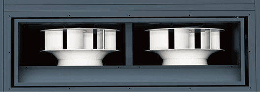 • 離心風機位于機體內部的一系列吸入孔同時將機組內部的熱空氣向頂部排出。這一獨特冷卻流場設計,使空壓機內部始終保持較低溫度,同時大大降低因風扇動作而產生的噪音。