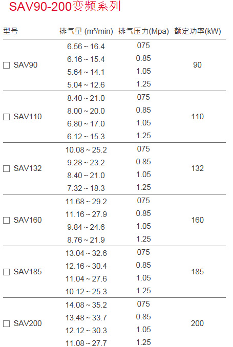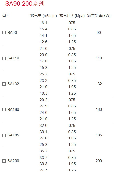 產品介紹 >SA系列螺桿空氣壓縮機>SA90-200(SAV90-200)系列